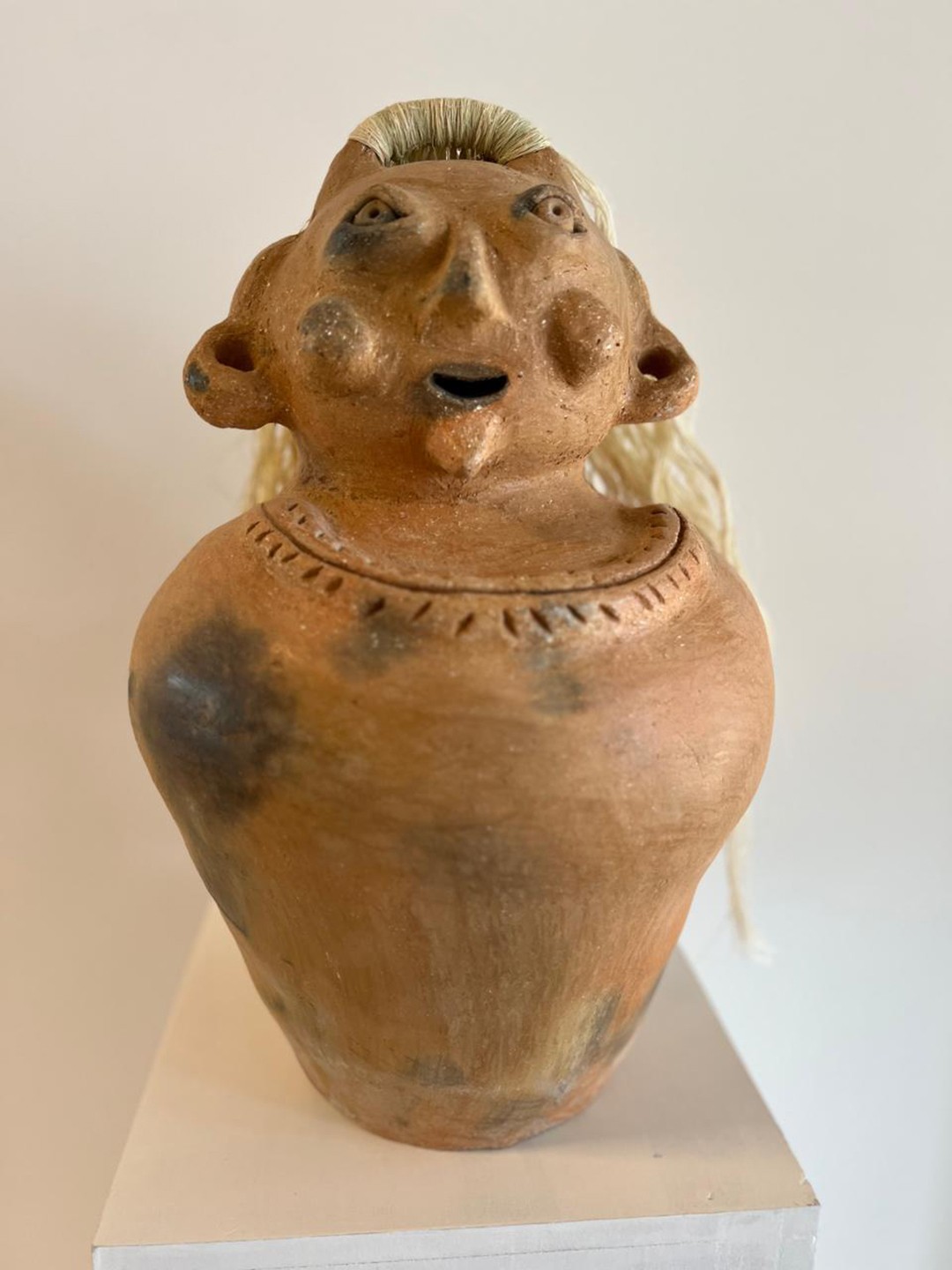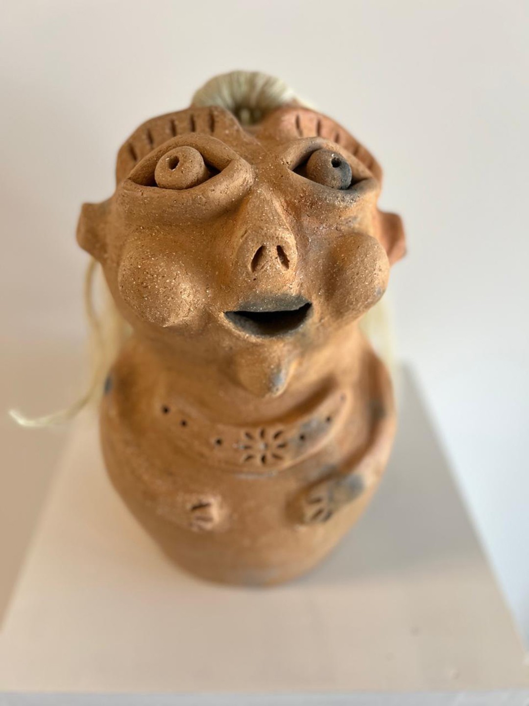 Su práctica escultórica, íntegramente realizada en barro, está fuertemente arraigada en los saberes ancestrales de su pueblo y en una cosmovisión que trasciende lo material.