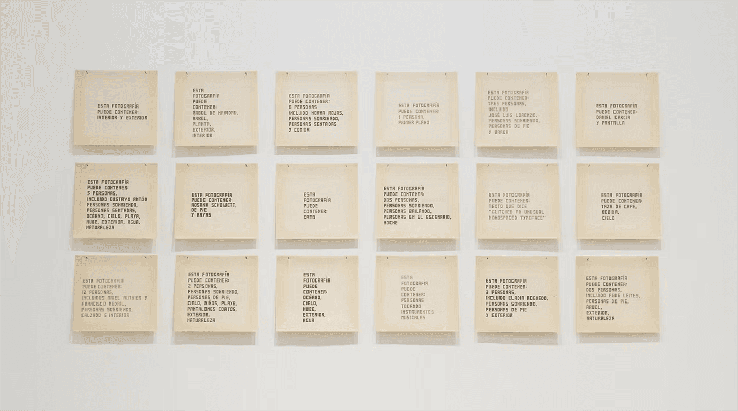 1 · Transcribir el texto alternativo automático (AAT) encontrado en Facebook y generado por un robot que interpreta imágenes, describe situaciones y olvida jerarquías. Dejar de lado el malestar por la certeza de la vigilancia y autorizar a esta aplicación como un ser con habilidades literarias. Acaso, ¿no hay algo de poesía en esas descripciones absurdas, en estas enumeraciones disparatadas? Aceptar el potencial expresivo de un ente sin alma.