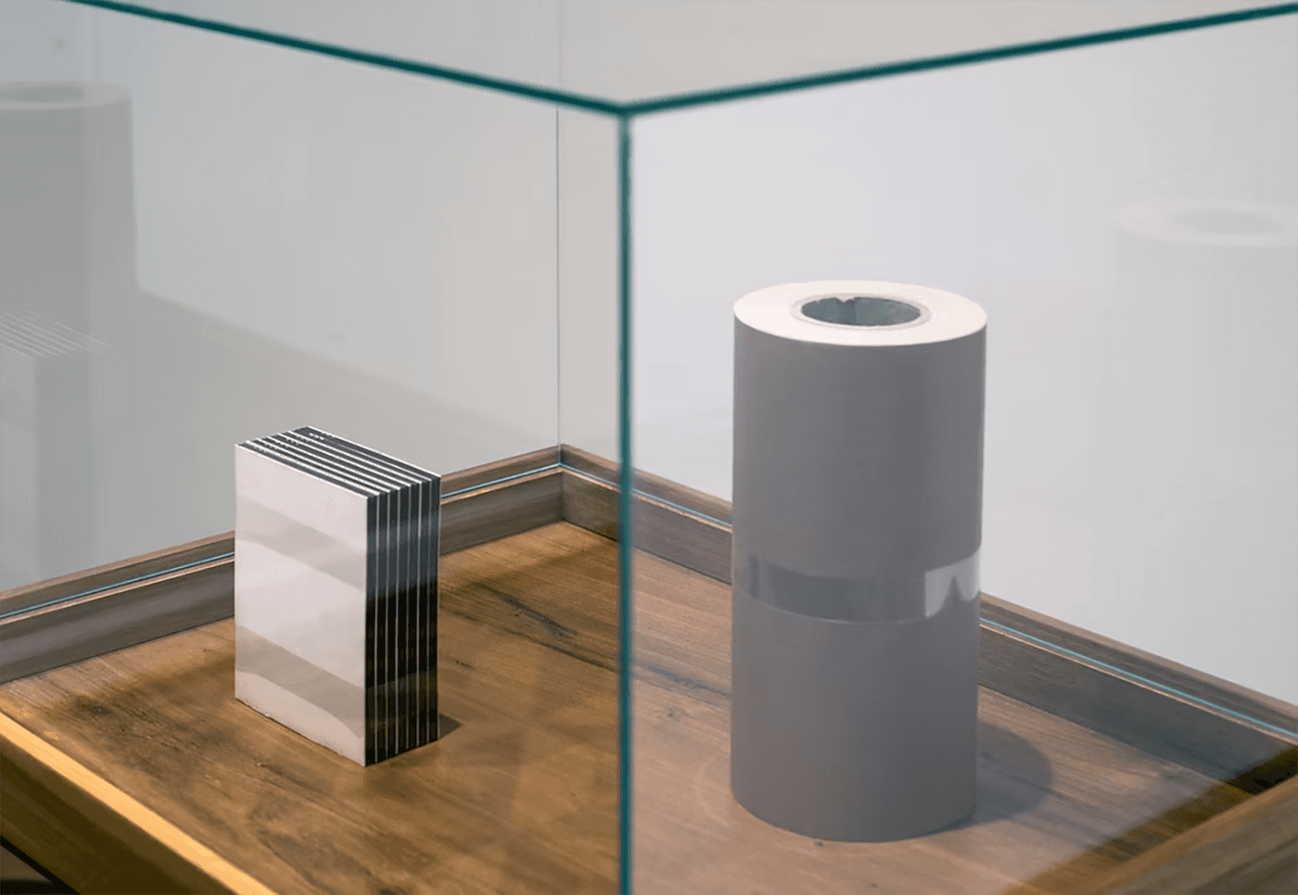 5 · Proyectar una traducción de figura a volumen, de una superficie en el plano a cilindro y a prisma rectangular. Explorar las tres dimensiones. Sumar: 50 m de papel fotográfico + 120 placas de película negativa. Resultado: dos cuerpos sensibles.