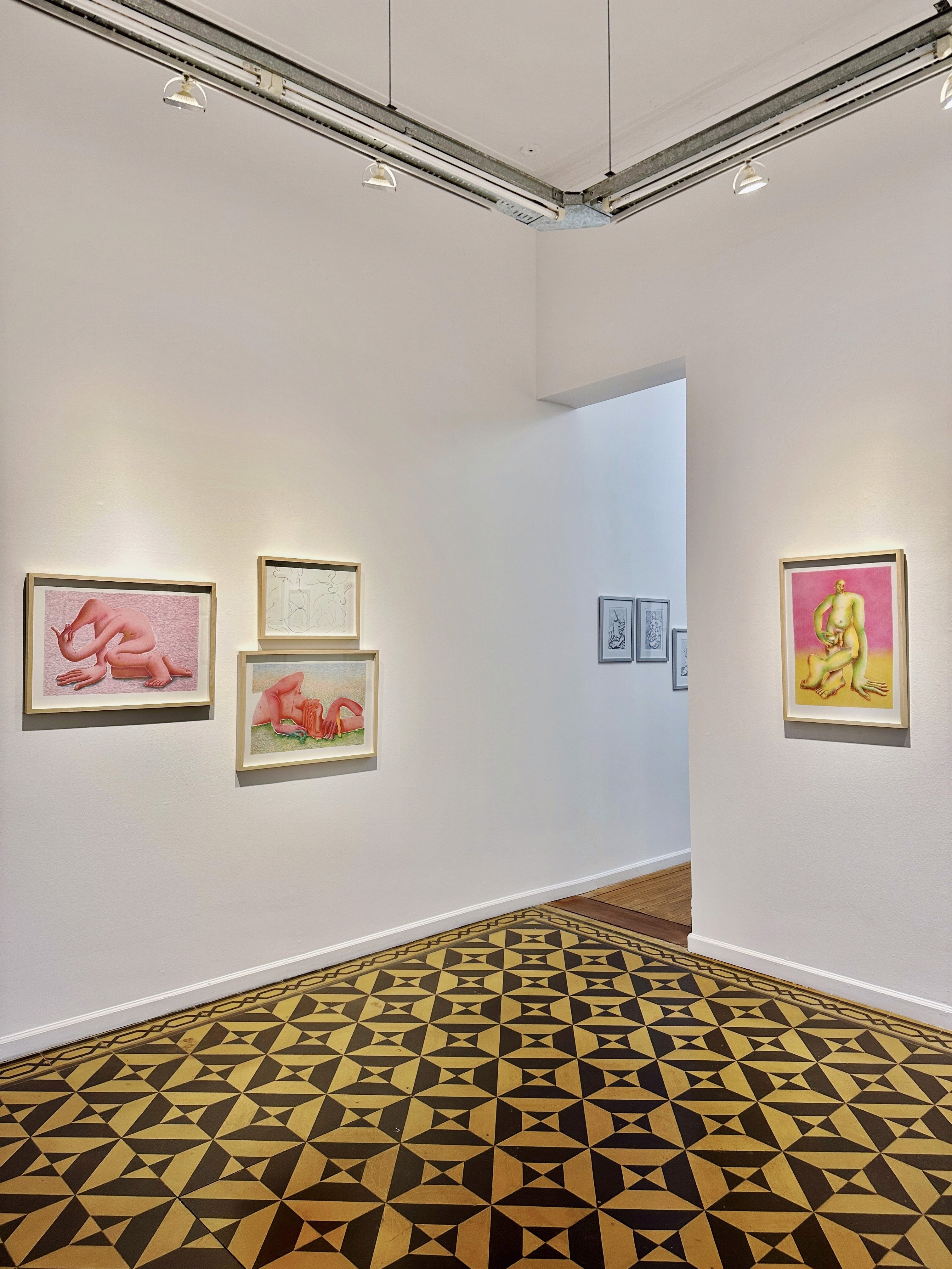 Algunos hasta llegan a confundirse con su entorno o se disuelven con el fondo. Hay dedos separados de manos y pies, cabezas sin cuellos y torsos sin extremidades. Cada cual guarda su propia lógica secreta. Algunos se palpan o aprietan ellos mismos o a sus dobles. Otros se pliegan sobre sí como una masa. Sus superficies a veces son pulidas y brillantes, pero en otras ocasiones se cubren de marcas, borrones o grafismos como venas bajo una piel transparente.