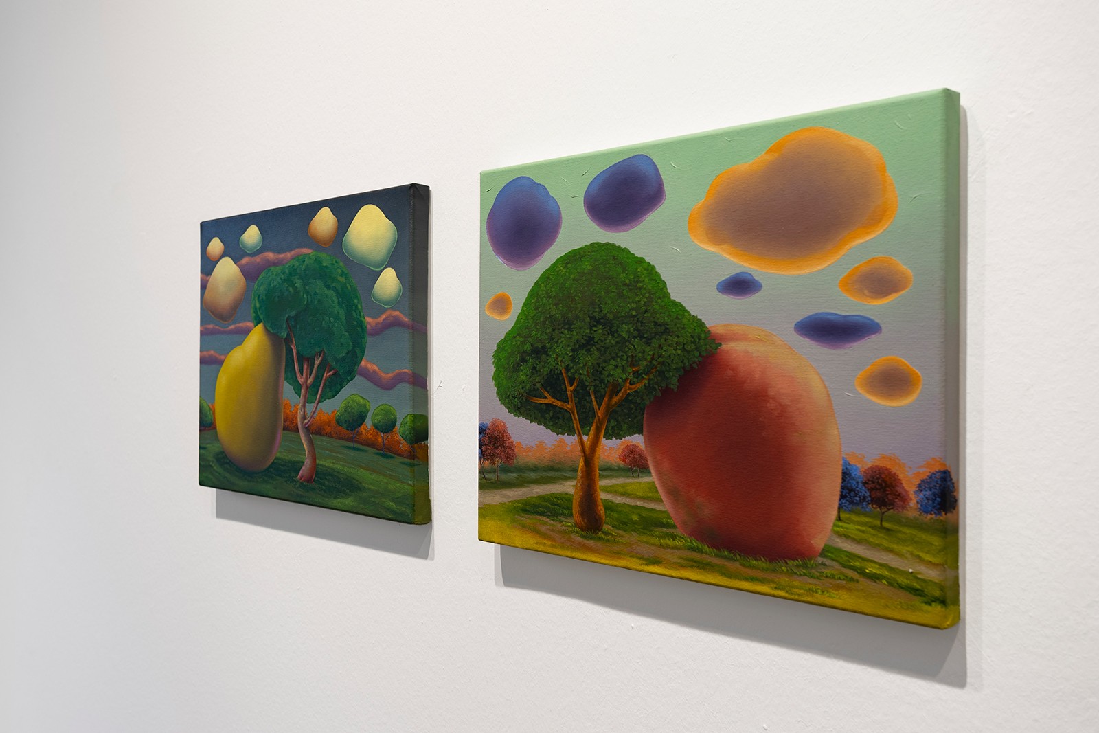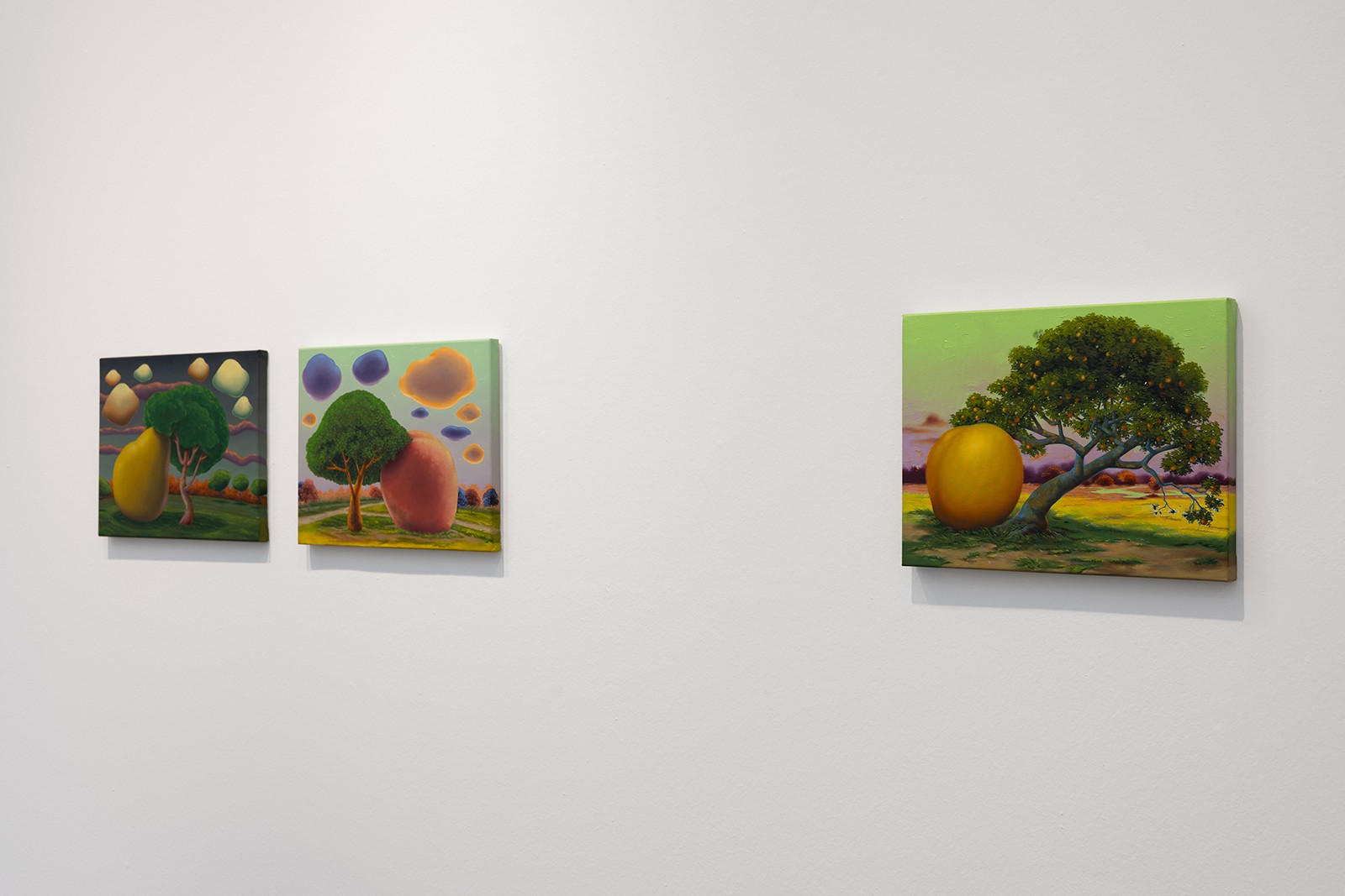 Me refugio del mundo en mis pinturas y paseo entre los árboles y la desmesura de los frutos contenidos en los bastidores que “ostentan la brevedad del formato burgués”***, donde no parece haber peligros entre tanta redondez; me diluyo en la fluidez acuosa de los pigmentos y me abstraigo con las manchas que no son nada y también son nubes.