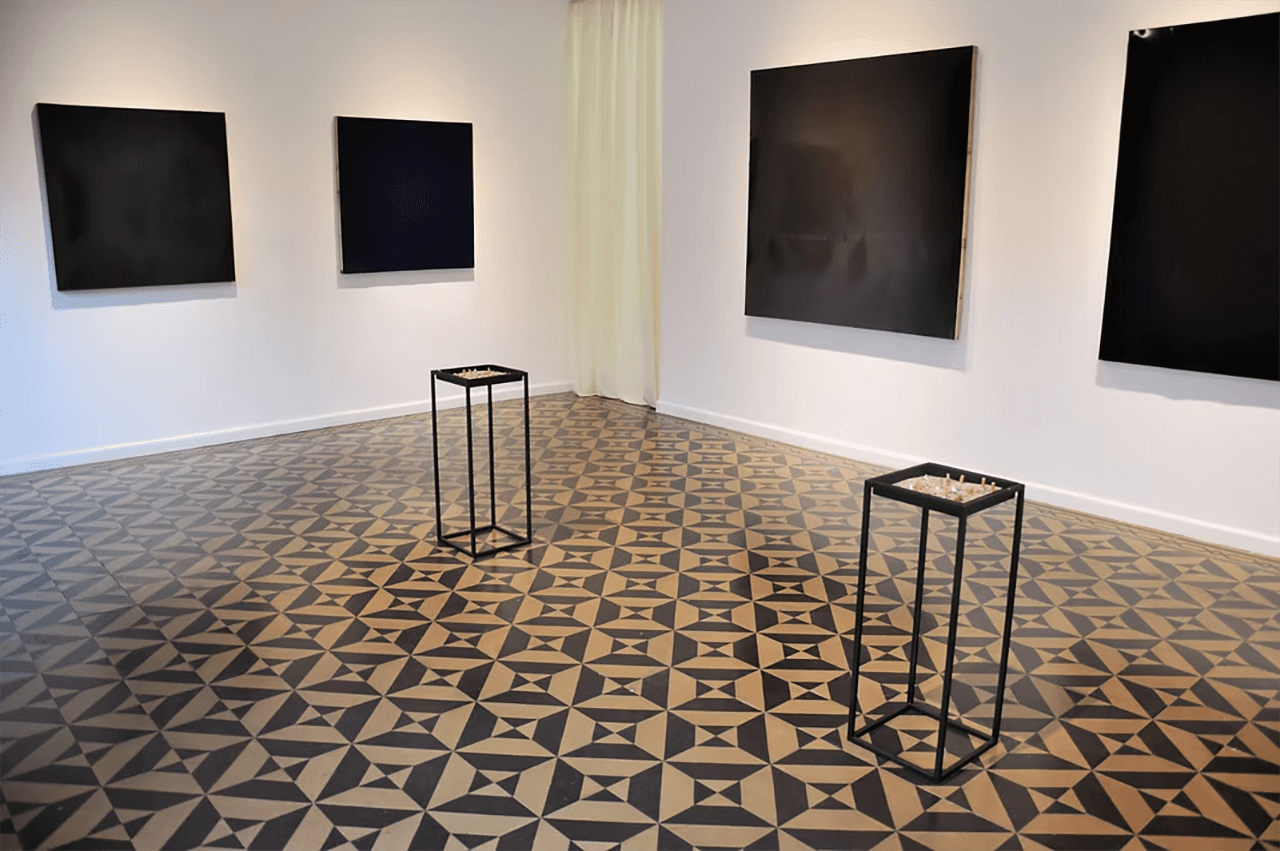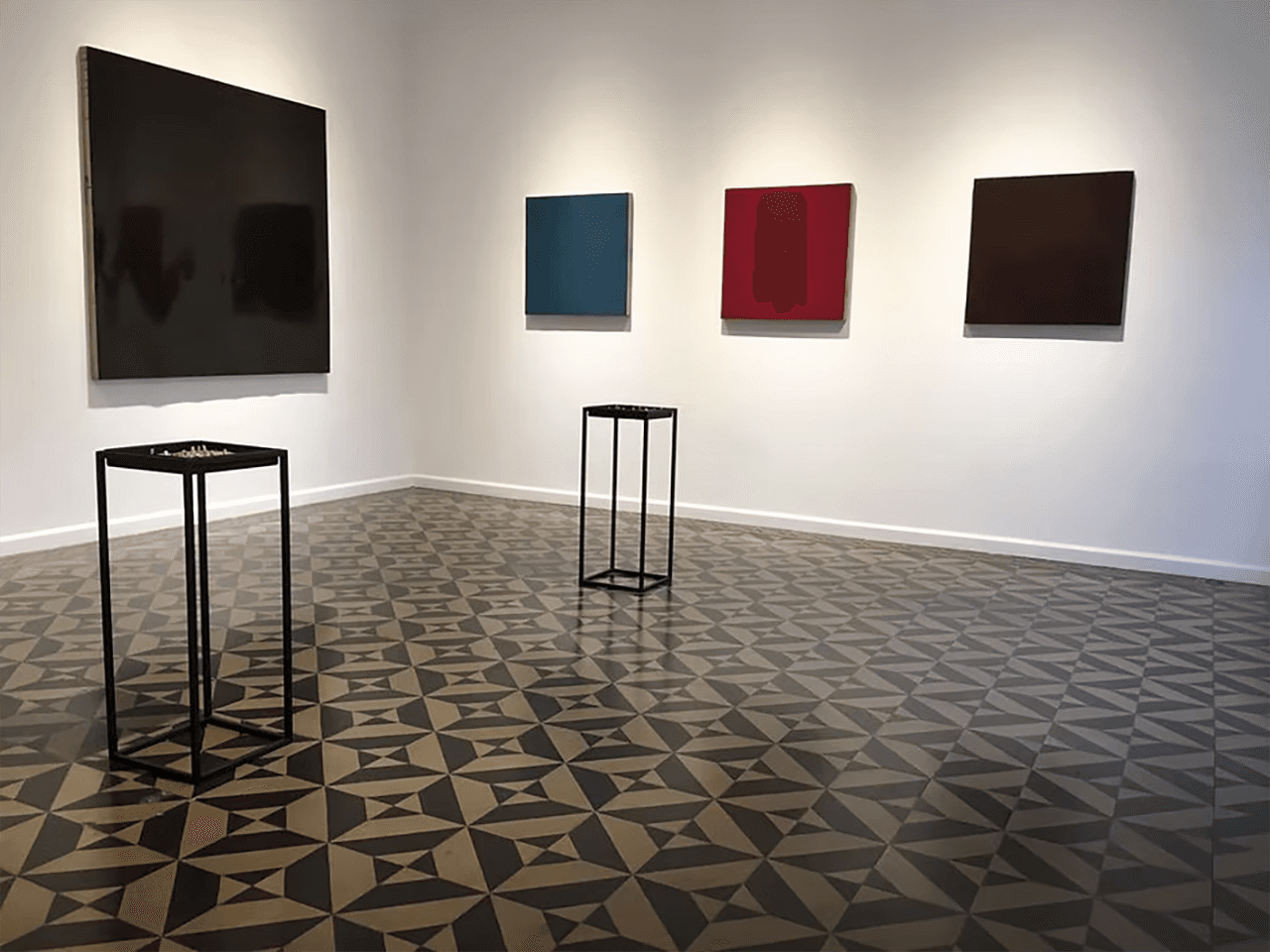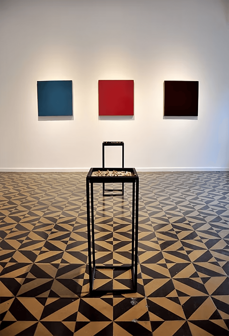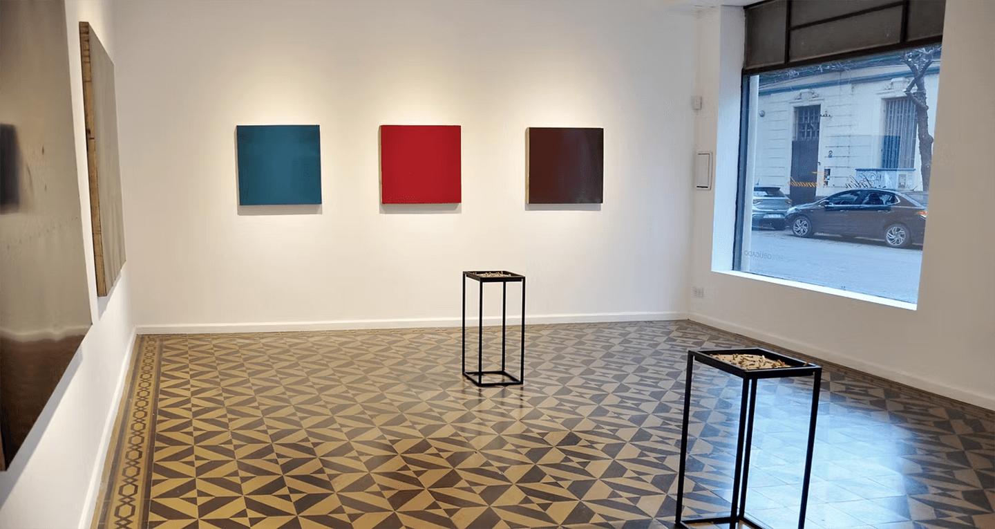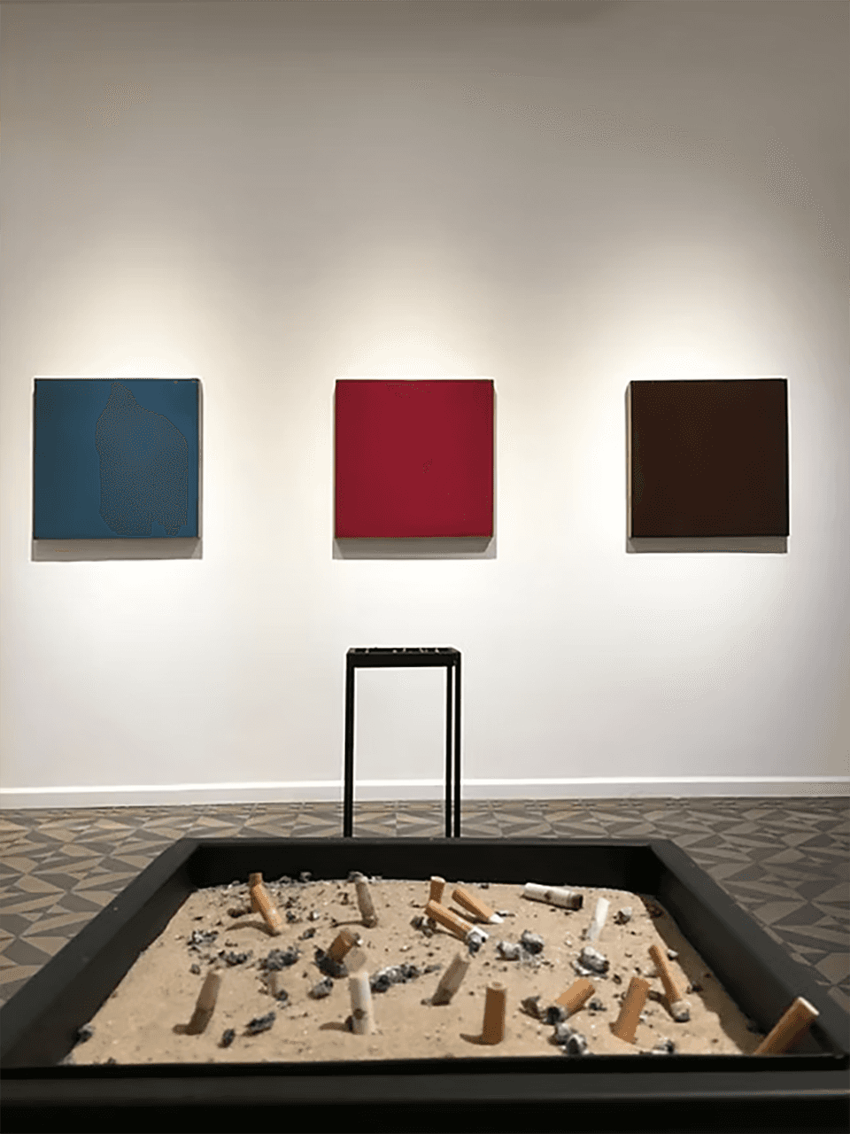 En Salón Fumador, esta dupla de artistas propone un espacio con cuadros cuadrados a partir de una práctica en vía de extinción: la cartelería sobre chapa. Verde noche, Marrón, Carmín, Azul marino, Cedro, Azulejo y Tabaco se reúnen en la sala.